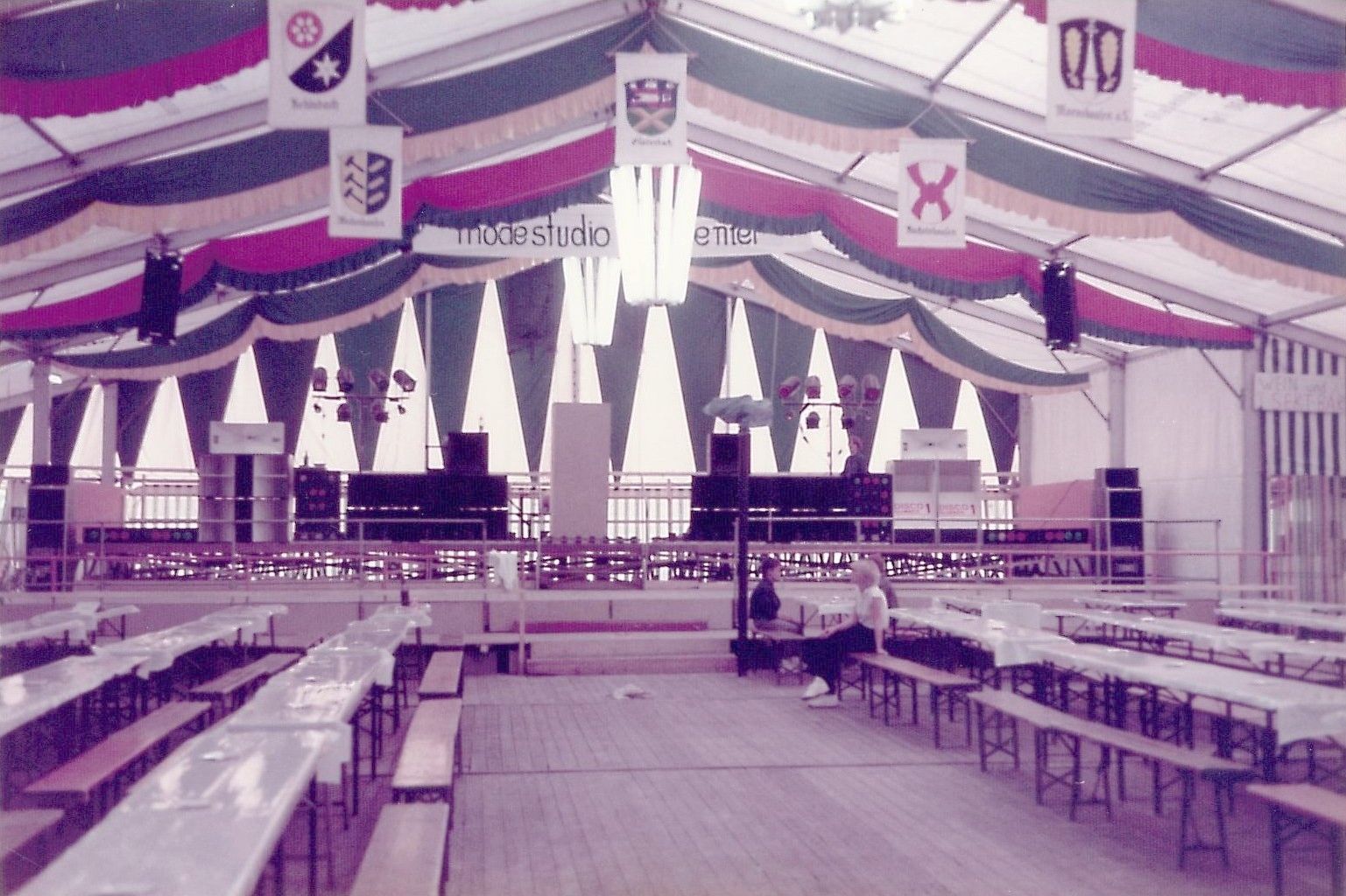 Am 27. Juni 1984 traten wir beim traditionellen Kirschenmarkt in Gladenbach (bei Marburg) auf. In diesem 3000-Mann-Zelt mussten wir ziemlich die komplette Soundanlage aufbauen, um einen satten Discosound mit ordentlich Bass zu erzeugen. Ganz außen die KM-Boxen, dann zur Mitte zu links die zwei W-Hörner übereinander gestapelt, rechts die beiden Thunderbolt-Bassrutschen, jeweils mit den weißen, weit abstrahlenden Electrovoice-Hörnern EV-HR6040A obendrauf. Daneben links und rechts jeweils vier Martin-Bins Basshörner und Mittel-Hochtonlautsprecher. Das war schon richtig deftige Power - zu diesem Zeitpunkt waren wir die stärkste mobile Diskothek Deutschlands. ... mehr Infos demnächst ...