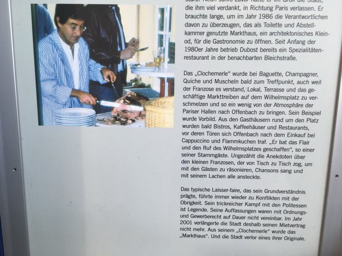 Der Wilhelmsplatz ist gesäumt von repräsentativen Häusern aus dem Gründerzeitalter, die zusammen mit den zahlreichen Bistros und Lokalen dem Platz ihr idyllisches, mitunter mediterranes Ambiente unter den großen, ausladenden Kastanienbäumen verleihen. Offenbachern sagt man eine südländische Lebensweise nach. Der Besuch des Wochenmarktes gilt vielen dafür als Beleg.